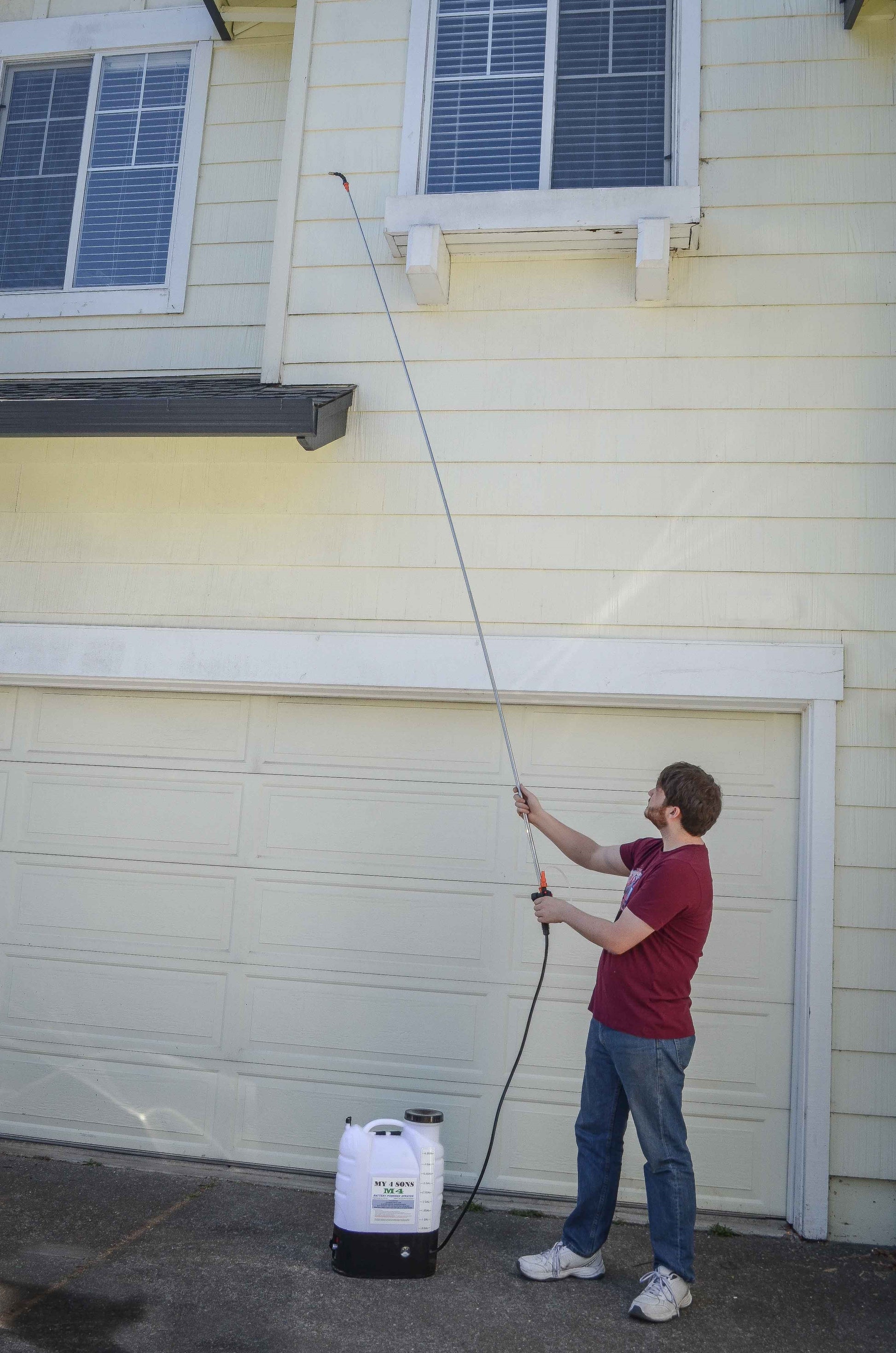 Works great if you need to reach tree tops, windows, etc, with mist or pin stream spray. Spray can reach up to 30 feet vertical. (7 feet hands to ground, 14 foot telescope, 7 foot spray distance from tip). Wand attaches to all M4 nozzles (M14x1.5mm thread). This wand is only directly compatible with the M4 backpack sprayer.