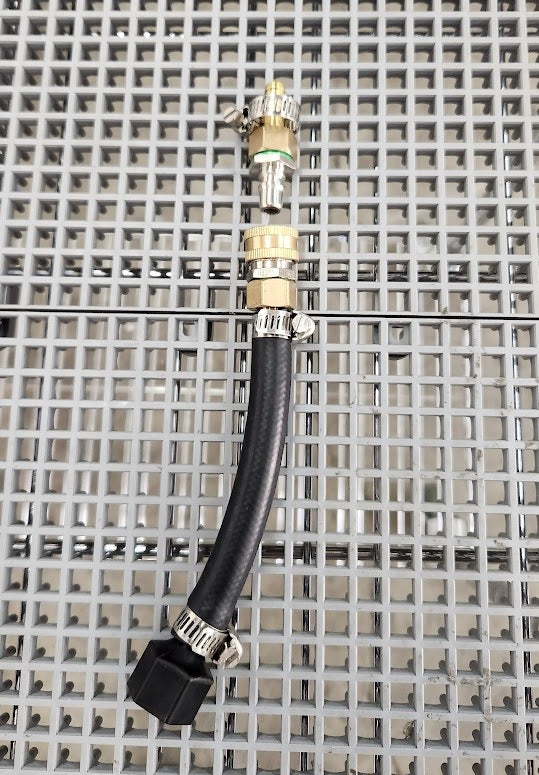 Use this kit to change out the nylon quick release to brass quick release. Kit comprises strain relief hose with brass female quick release, male brass barb to be inserted into the 5ft hose, and hose clamps. Not recomended if you spray acids or bleaches.