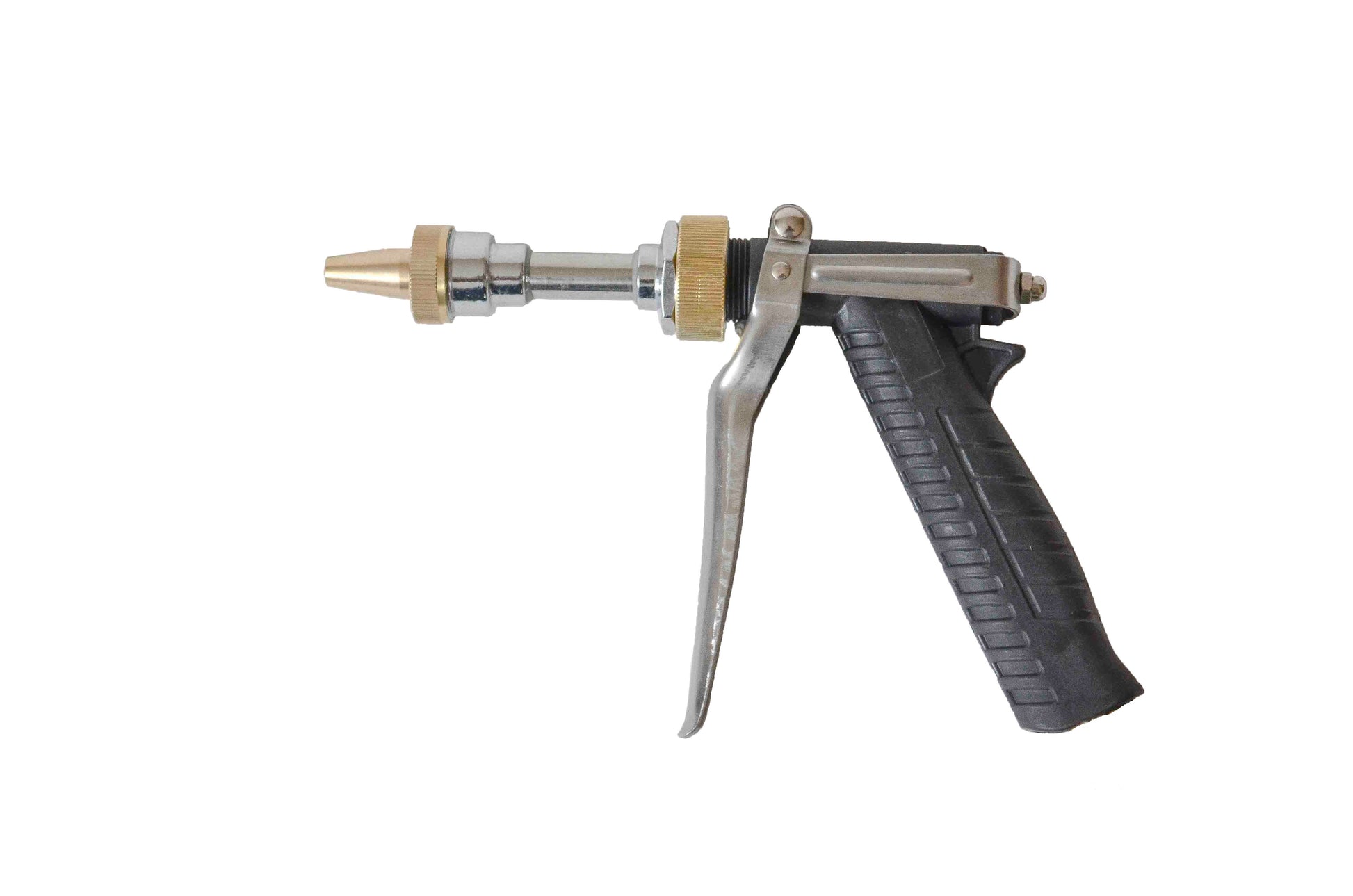 Provides maximum range (30 Feet) and variable spray control (from wide fine cone spray to jet as you pull the trigger). Includes adapter to attach to stainless HD Wand and adjustable trigger lock (brass nut on barrel) HD Wand is shown for reference and is Not Included. Not recommended for bleaches or acids (See Plastic Valve Handles) Bonus: Now Includes Quick Release Upgrade ($9.99 Value), 5ft brass hose ($16.99 value)