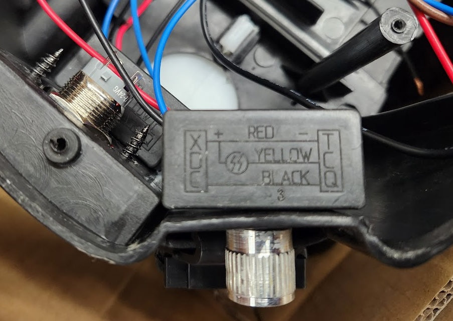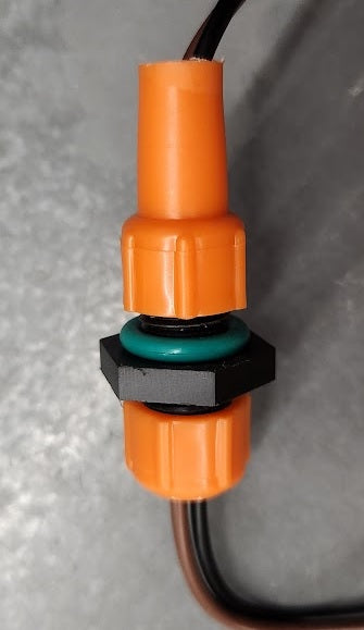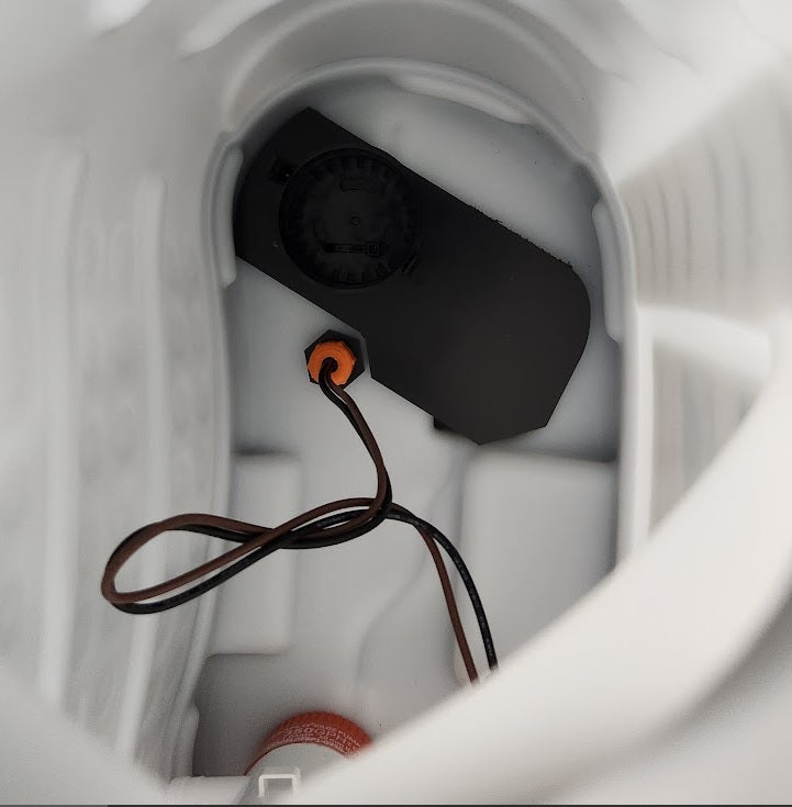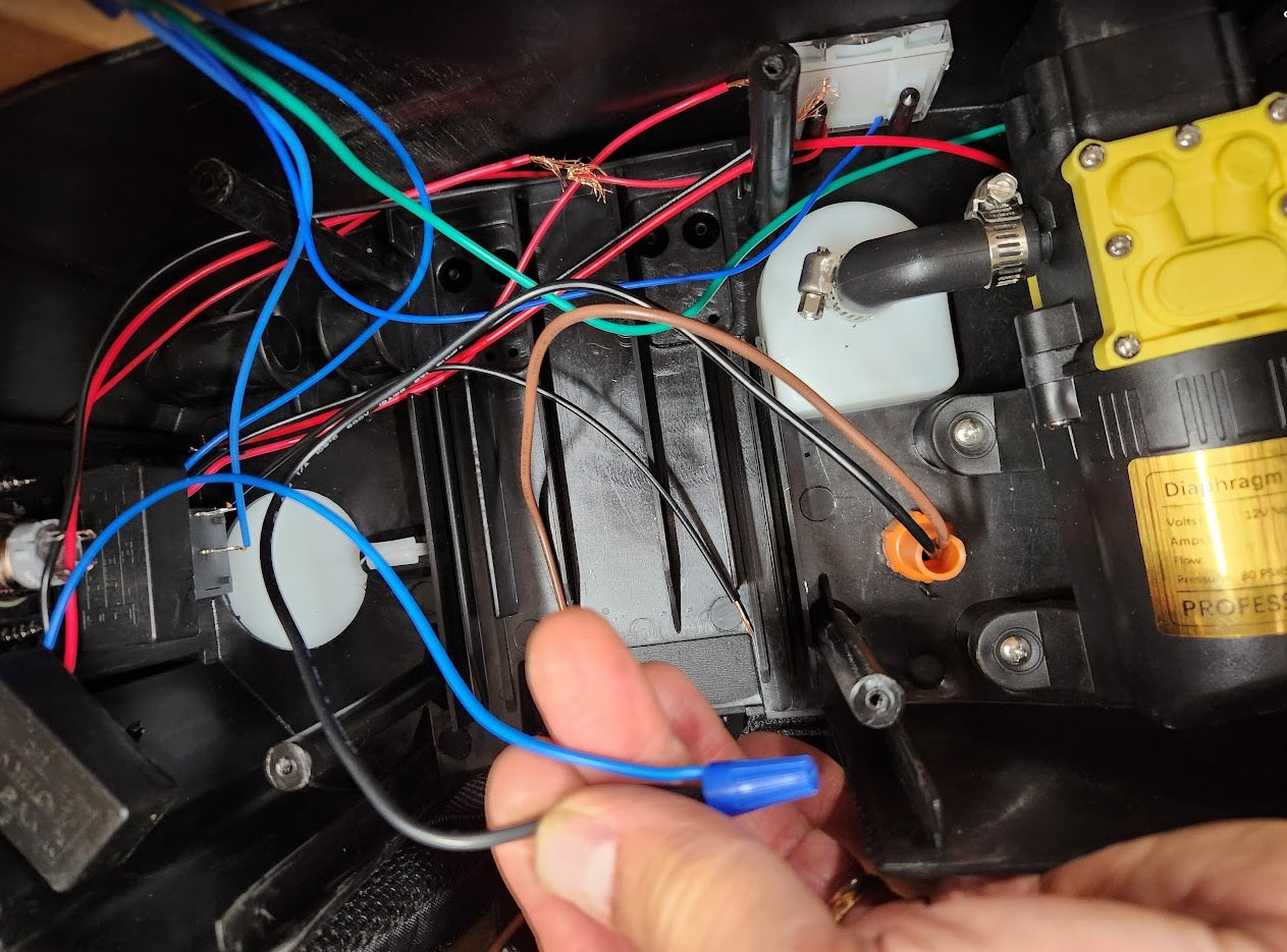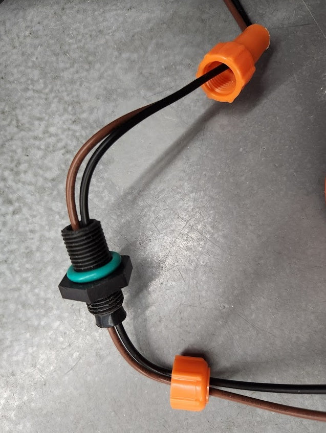 Includes polypropylene bulkhead pre-assembled with Seaflo wires and with anchor plate and rotary switch. Drill 9/16" hole for bulkhead, 7.5mm (.3 in) hole for rotary switch. Connect brown (+) wire from rotary to red wire bundle. Connect black wire to blue wire of included rotary switch. Connect remaining red and black wires of rotary switch to black and red wire bundles. Text Lance at 707 478 2162 for help installing.