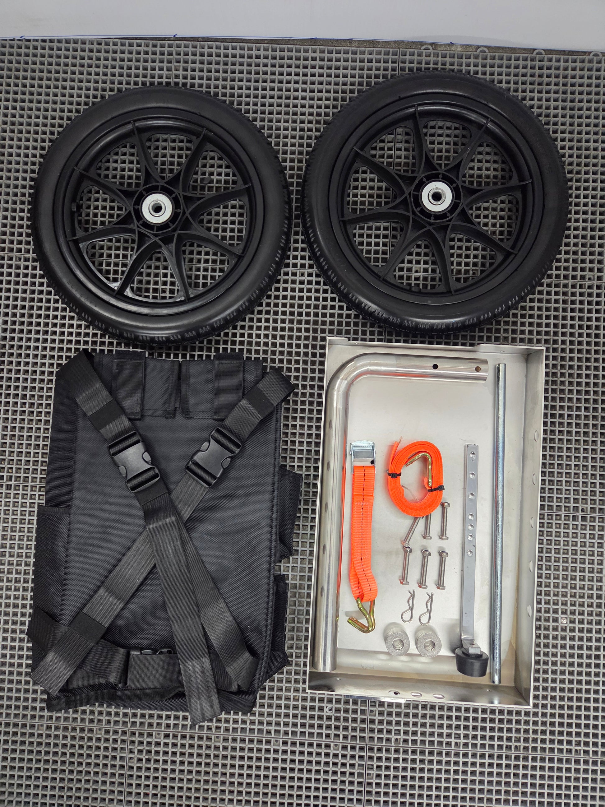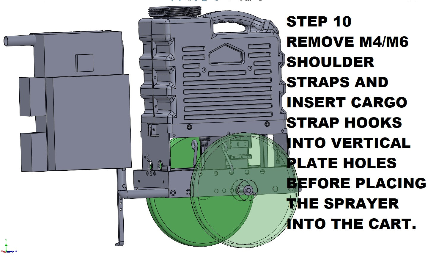 Brand new stainless steel cart is perfect for customers who need to treat large areas requiring boom sprayers, or customers who need to navigate narrow furrows*. Compatible with both the M4 and M6 backpack sprayers. With monstrous 14 inch wheels you'll have no trouble navigating rough terrain. Parts: Top + Bottom Handles, Cargo Tray, Stand, Axle, 2x 14in Wheels, Cargo Strap, 6 Stainless Steel Bolts + Lock Nuts, Wand Storage Bag, Multiple axle locations enable handle/cart load optimization.